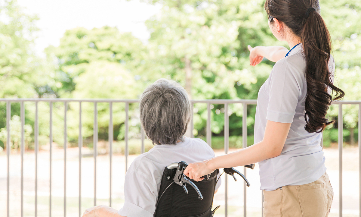 車いすに乗る方とケアする方