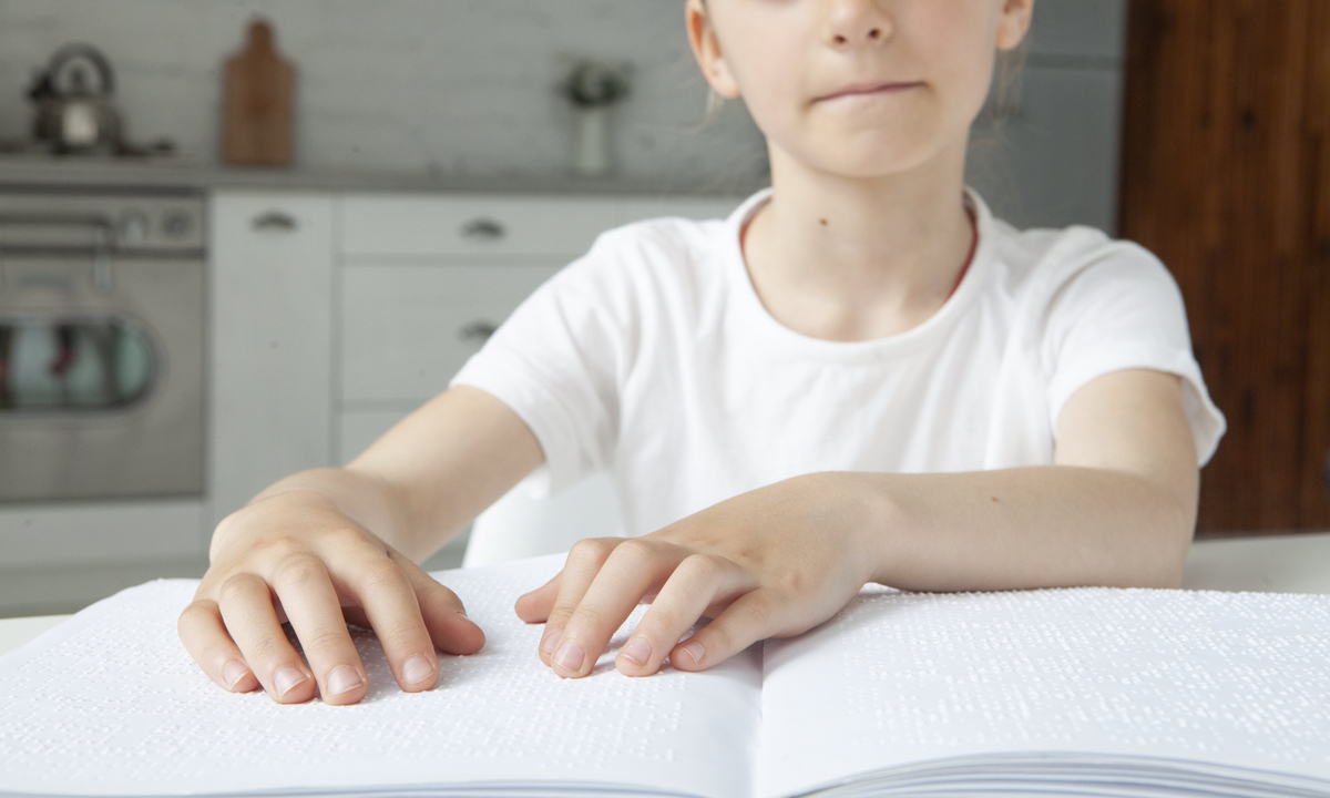 点字を読む女性